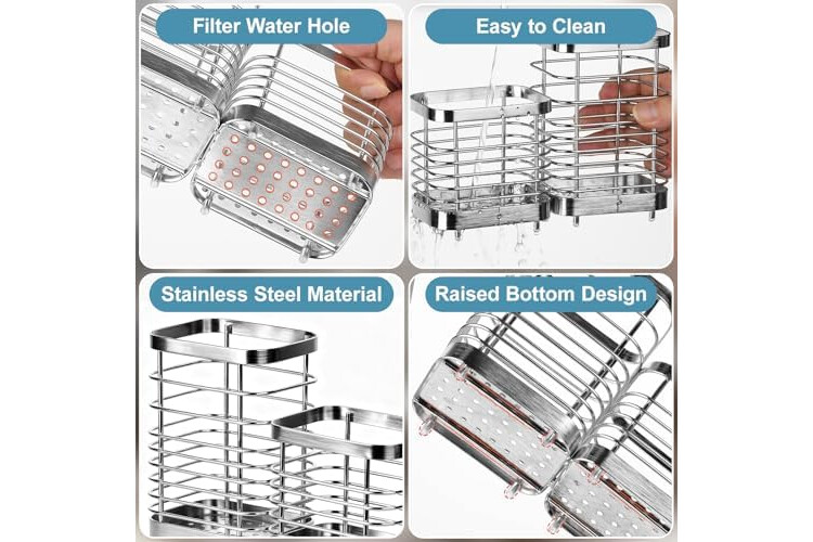 • High Quality Stainless Steel Material: This kitchen utensil rack is made of durable stainless steel with sturdy cylindrical legs to securely attach to the countertop without slipping or wobbling.