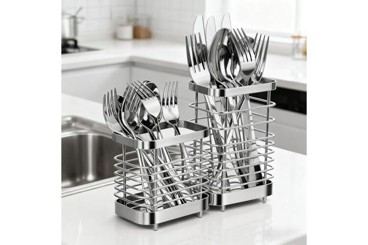 IWNTWY Utensil Holder, Stainless Steel Utensil Drying Rack for Kitchen Counter, Silverware Cutlery Flatware Holder Forks, Knives, Spoons, Chopsticks Organizer