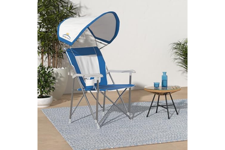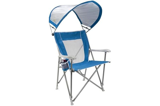 GCI Outdoor Sunshade Captain's Chair | Collapsible Folding Canopy Shade Chair with Durable Armrests, Drink Holder & Portable Carry Bag, Perfect for Beach Trips & Picnics — Saybrook Blue