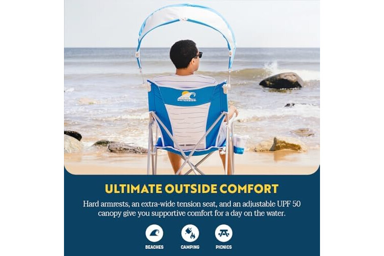 SUN. SURF. SAVOR. A folding chair fit for a captain! Hard armrests, a wide tension seat, and an adjustable UPF 50 canopy — the SunShade Captain's Chair gives you the support and comfort you need for a long day on the water or on the field.