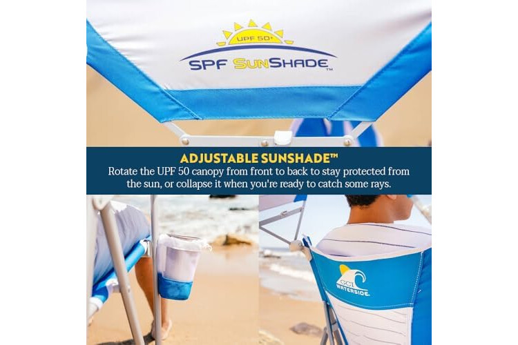 FRONT ROW SEAT. Perfect for waterside activities or backyard lawn BBQ, the SunShade is ready for action. With a built-in beverage holder, solid armrests and a breathable mesh backrest for back support, enjoy more time outside with family and friends.