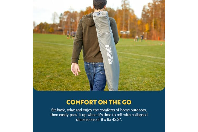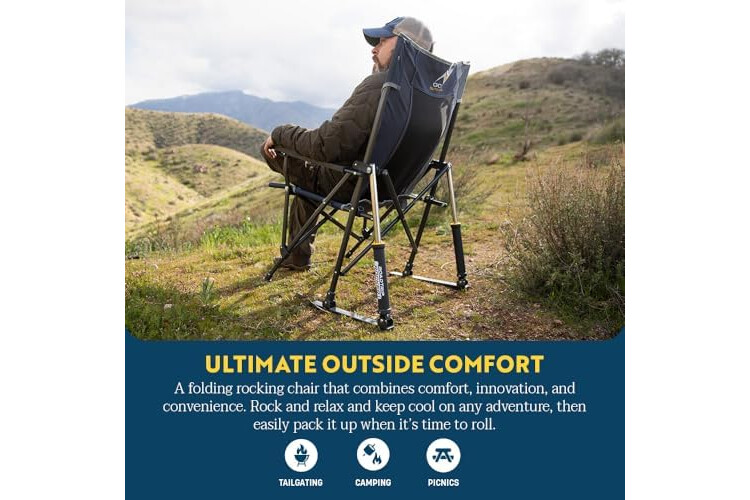 OUTDOOR LIVING IT UP. The RoadTrip Rocker from GCI Outdoor combines comfort, innovation, and portability into the ultimate adult rocking chair. Rock and relax in comfort on any adventure with those you love, then just fold it up when it's time to travel.