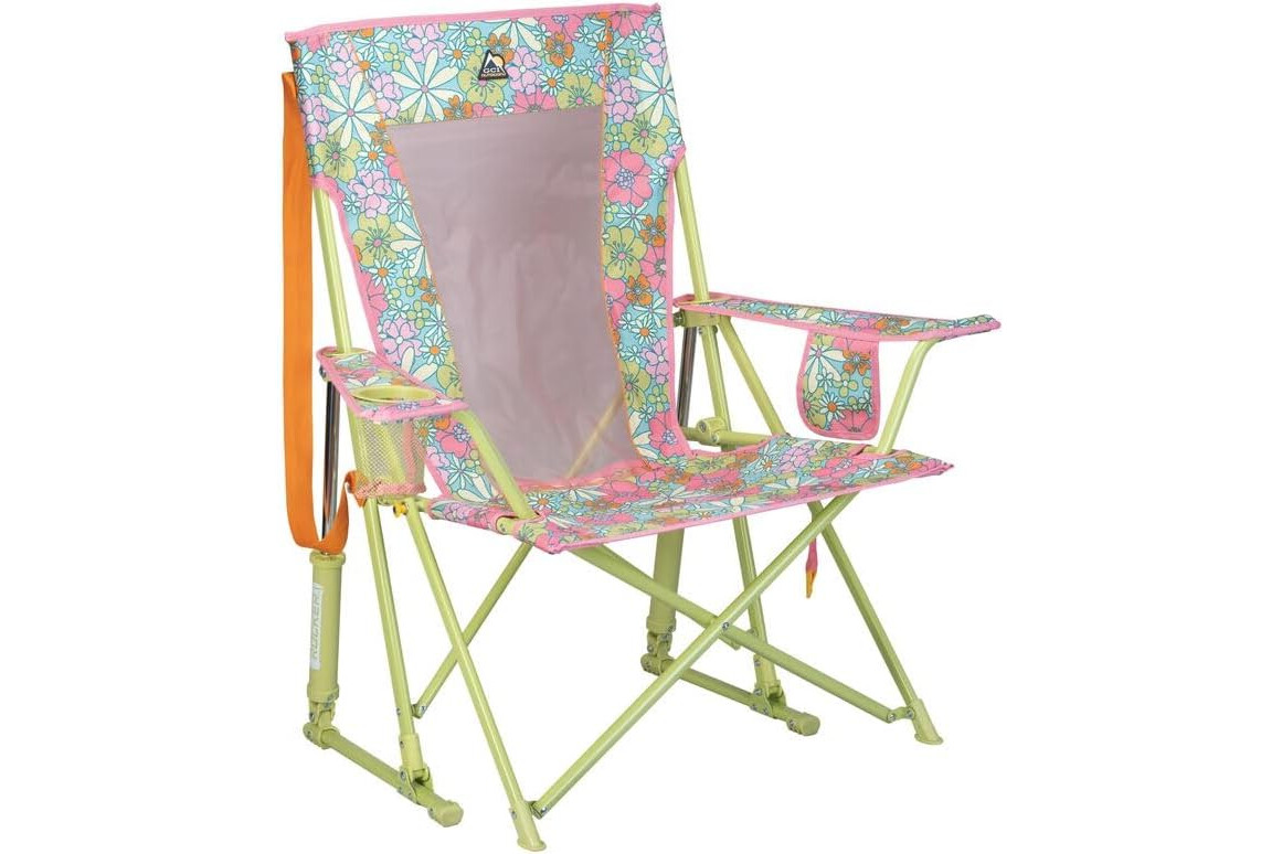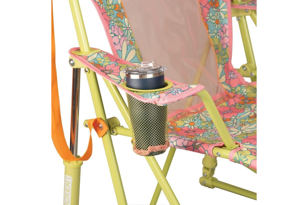 GCI Outdoor Comfort Pro Rocker Camping Chair | Portable Folding Rocking Chair with Durable Armrests & Drink Holder — Floral