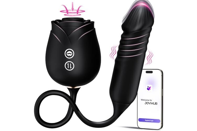 Dildo Vibrator Women Sex Toys - MOOLIGIRL APP Control Rose Sucking Vibrater & Vibrating & Thrusting Dildos for Clit Nipple G Spot Anal Stimulation, 10 Modes Tongue Sucker Adult Toy for Couples Games