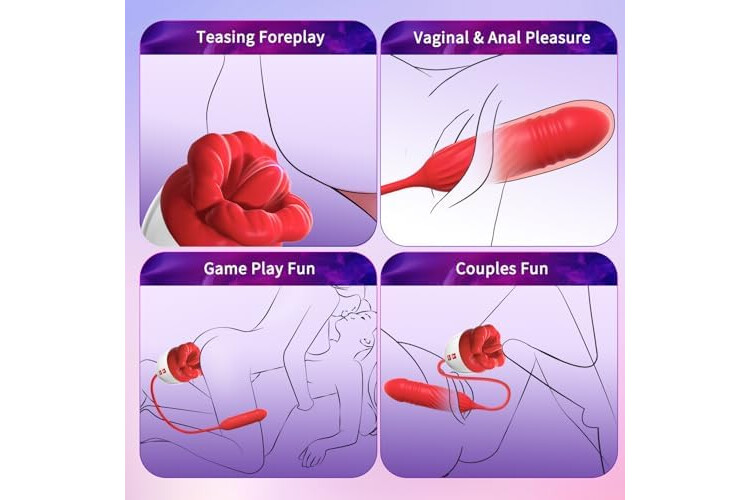 Get 3-in-1 Pleasure with Tongue Licking, Thrusting & Vibrating Modes: Experience next-level stimulation and realistic sensation with this nipple stimulator, which features 10 licking, thrusting and vibrating modes. The unique clitoral licking vibrater mimics oral sensations, while the thrusting dildos vibrators penetrates deeper for a more satisfying G-spot and vaginal massage. women rose toy