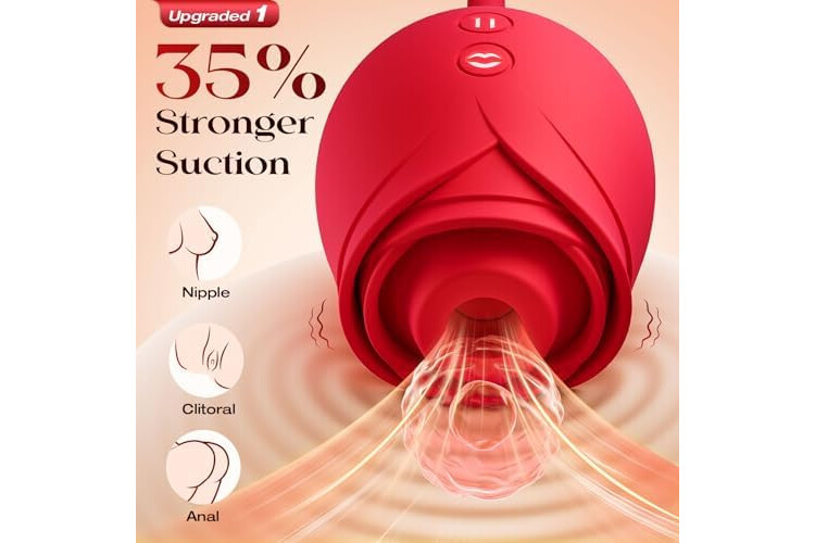 Upgraded 35% Stronger Suction with Adjustable Intensity Levels: Based on user feedback that previous suction felt too weak for effective stimulation, this rose adult toy features an upgraded system with 35% stronger maximum suction power. While the highest level delivers more noticeable sensation for clitoral use, all 10 suction modes remain smoothly adjustable, allowing comfortable control from gentle to stronger intensity