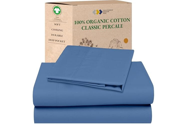 California Design Den Extra Long Twin Sheets Set - Soft 100% Organic Cotton, Cool Percale, Deep Pocket Organic Sheets with Anti-Skid Elastic, Durable Bedding Set for Dorm Room - Riviera Blue