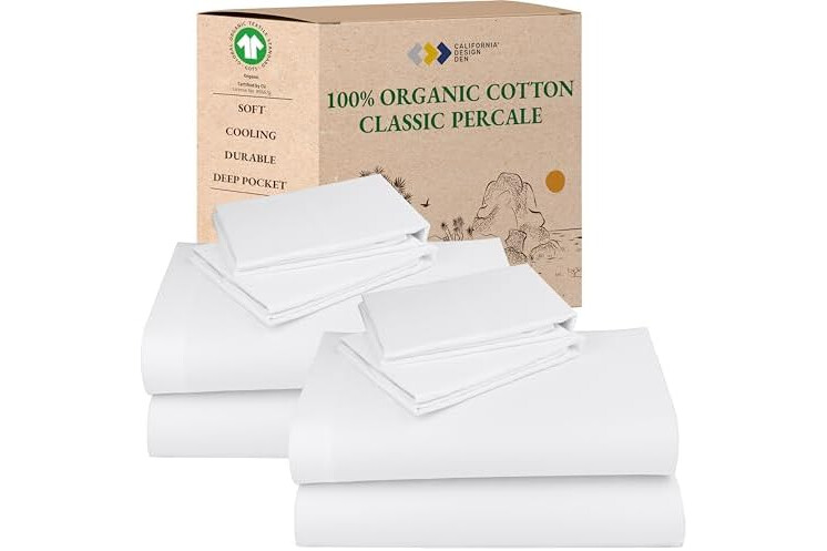 California Design Den 2-Pack Full Size Sheet Sets - 100% Organic Cotton, Crisp Percale Feel, Deep Pocket White Sheets, Lightweight Bedding Set - White