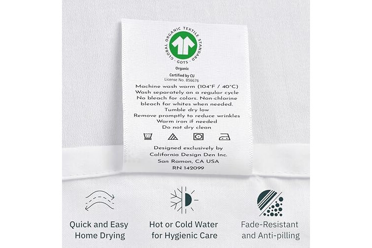 2 Pack Organic Sheets Twin XL Size Sets: Includes 2 flat top sheets (66" W × 100" L), 2 deep pocket fitted sheets (39" W × 80" L), and 2 standard / queen size pillowcases (21" W × 30" L) with an envelope closure. The fitted sheet’s gripper elastic fits mattresses up to 14" deep and prevents slipping. Top/Bottom tags simplify bed making.