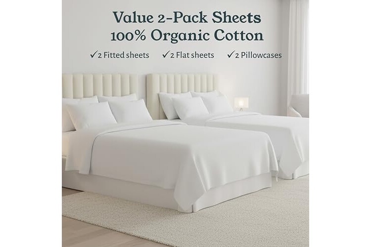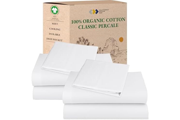California Design Den 2-Pack Twin XL Sheet Sets - 100% Organic Cotton, Crisp and Breathable Percale Twin XL Bed Sheets, Deep Pockets, Lightweight Bedding Set - White