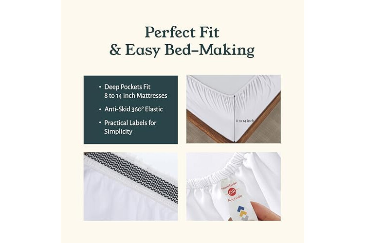 OUR SHEET SETS HAVE EARNED THE GOOD HOUSEKEEPING SEAL (2 Pack Organic Sheets Twin XL Size Sets): Includes 2 flat top sheets (66" W × 100" L), 2 deep pocket fitted sheets (39" W × 80" L), and 2 standard / queen size pillowcases (21" W × 30" L) with an envelope closure. The fitted sheet’s gripper elastic fits mattresses up to 14" deep and helps reduce slipping. Top/Bottom tags simplify bed making. Independently tested to earn the prestigious Good Housekeeping Seal.