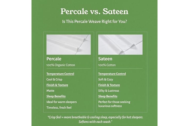 Natural Organic Cotton Percale: GOTS Certified Product - sustainably made. Gentle on skin, these twin XL percale sheets are made using 100% organic cotton and offer a balanced feel of crispness and breathability. These durable bed sheets have a beautiful matte finish and an airy, smooth feel.