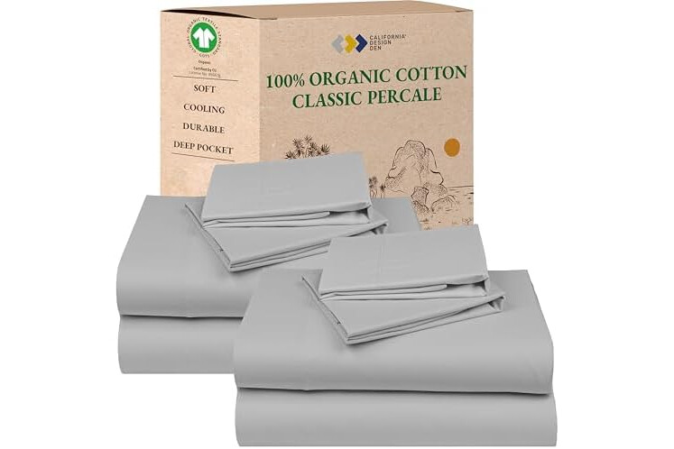 California Design Den 2-Pack King Size Sheets Set - 100% Organic Cotton, Crisp and Breathable Percale Feel, Deep Pocket King Sheet Sets, Lightweight Bedding - Light Grey