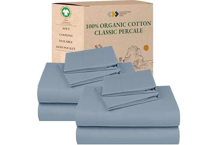 California Design Den 2-Pack Queen Bedsheet Sets - 100% Organic Cotton, Crisp, Breathable and Lightweight Percale, Deep Pocket Sheet & Pillowcase Sets - Blue Hydrangea