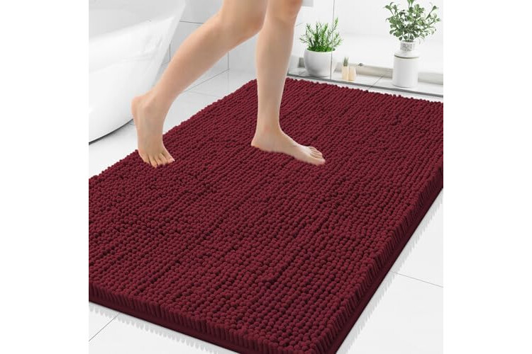Smiry Luxury Chenille Bathroom Rugs 44x32, Extra Soft and Absorbent Shaggy Bath Mat, Machine Washable, Non-Slip Plush Carpet Runner for Tub, Shower, and Floor, Home Decor Accessories, Burgundy