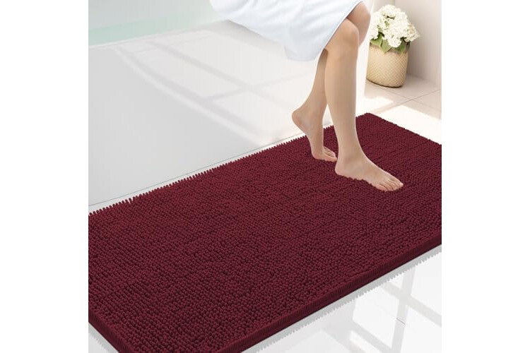 Smiry Luxury Chenille Bathroom Rugs 45x27, Extra Soft and Absorbent Shaggy Bath Mat, Machine Washable, Non-Slip Plush Carpet Runner for Tub, Shower, and Floor, Home Decor Accessories, Burgundy