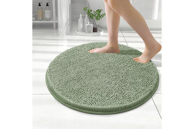 Smiry Luxury Chenille Round 24x24, Extra Soft and Absorbent Shaggy Bathroom Mat Rugs, Machine Washable, Non-Slip Plush Carpet for Tub, Shower, and Bath Room, Sage Green
