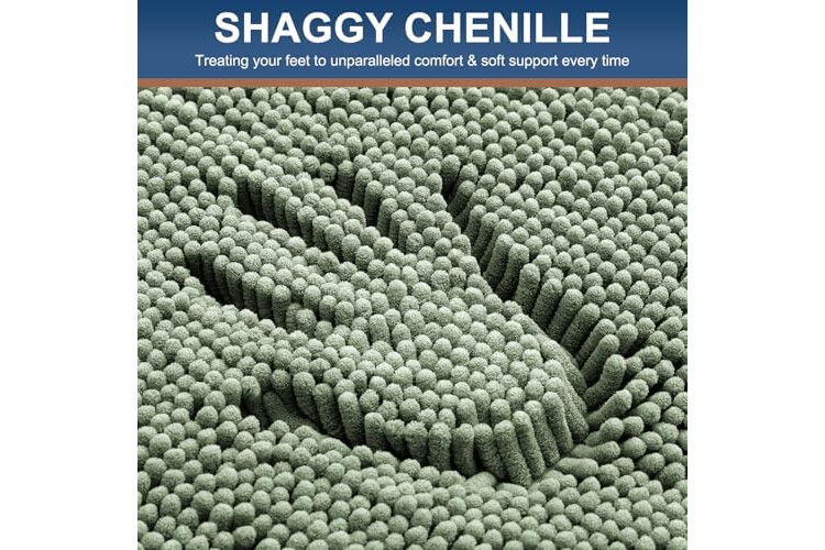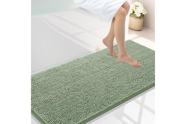 Smiry Luxury Chenille Bathroom Rugs 45x27, Extra Soft and Absorbent Shaggy Bath Mat, Machine Washable, Non-Slip Plush Carpet Runner for Tub, Shower, and Floor, Home Decor Accessories, Sage Green