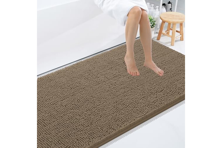 Smiry Luxury Chenille Bathroom Rugs 71x47, Extra Soft and Absorbent Shaggy Bath Mat, Machine Washable, Non-Slip Plush Carpet Runner for Tub, Shower, and Floor, Home Decor Accessories, Camel
