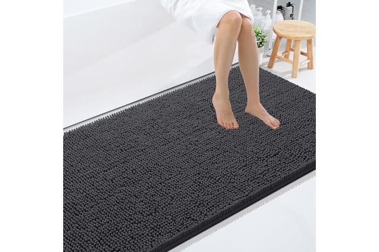 Smiry Luxury Chenille Bathroom Rugs 71x47, Extra Soft and Absorbent Shaggy Bath Mat, Machine Washable, Non-Slip Plush Carpet Runner for Tub, Shower, and Floor, Home Decor Accessories, Charcoal Grey