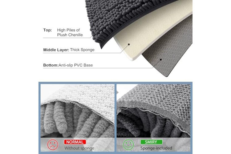 [Soft & Comfortable] Step onto the plush softness of Smiry luxury bath rugs, treating your feet to unparalleled comfort & soft support every time you exit the shower or bathtub.
