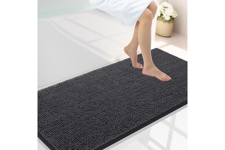 Smiry Luxury Chenille Bathroom Rugs 45x27, Extra Soft and Absorbent Shaggy Bath Mat, Machine Washable, Non-Slip Plush Carpet Runner for Tub, Shower, and Floor, Home Decor Accessories, Charcoal Grey