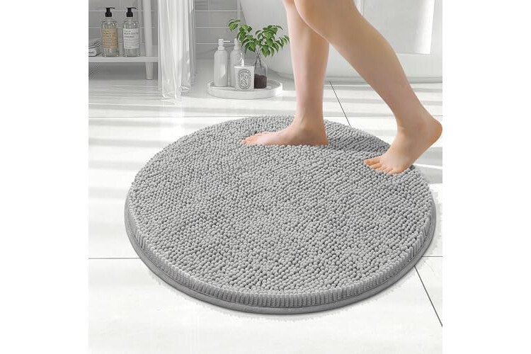 Smiry Luxury Chenille Round 24''x24'', Extra Soft and Absorbent Shaggy Bathroom Mat Rugs, Machine Washable, Non-Slip Plush Carpet for Tub, Shower, and Bath Room, Grey