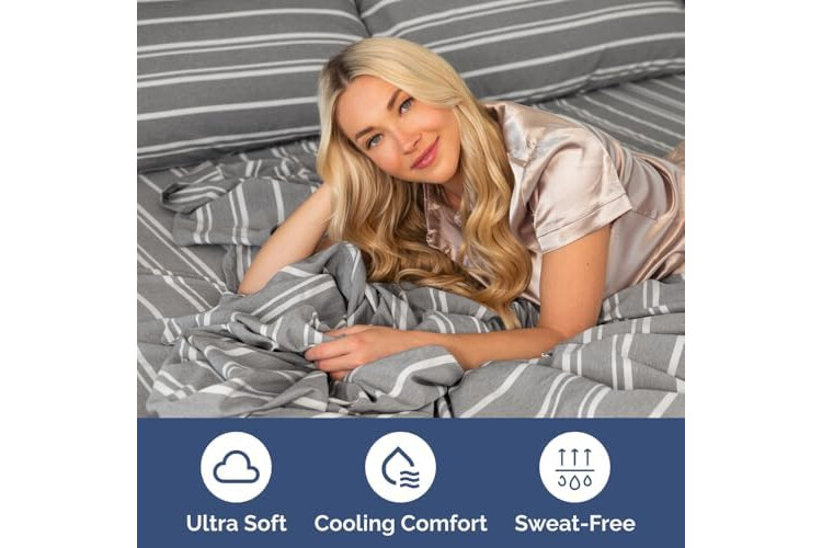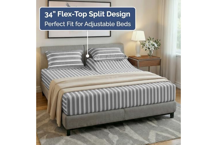 Split Head King Sheet Set – 4 Piece Flex Split Top King Sheets for Adjustable Beds - Fits 14” to 16" Mattress w/ Deep Pockets - Breathable & Cooling - Luxury Bedding and Wrinkle Free - Grey Stripes 3