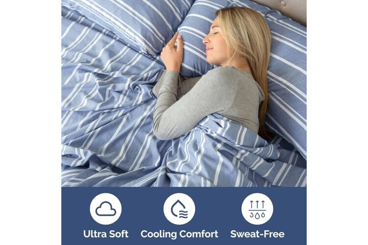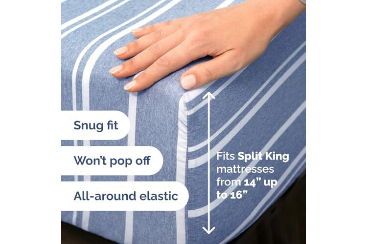 Flex Top Split Head King 4 Piece Sheet Set - Comfy Breathable & Cooling Bed Sheets Set - Hotel Luxury Bedding for Women, Men, Kids, Teens, Boys & Girls - Deep Pockets, Soft - Oeko-Tex - Blue Stripes