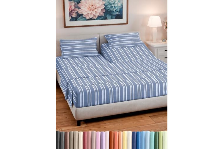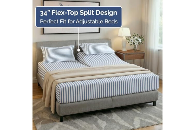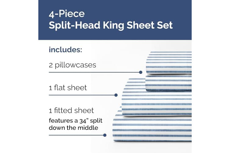 Split Head King Sheet Set – 4 Piece Flex Split Top King Sheets for Adjustable Beds - Fits 14” to 16" Mattress w/ Deep Pockets - Breathable & Cooling - Luxury Bedding and Wrinkle Free - Blue Stripes 3