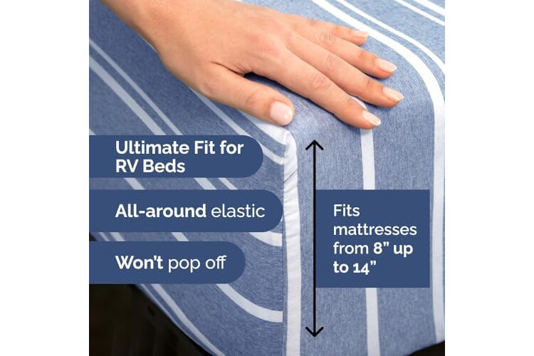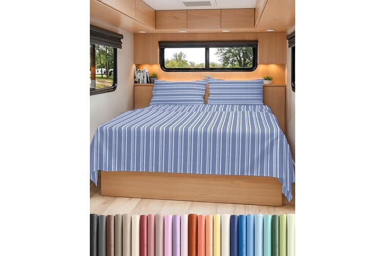RV Short Queen Sheet Set 60 X 75 - 4 Piece RV Short Queen Bed Sheets - Soft, Breathable & Cooling - Designed for Bunks, Trailers & Campers - Fits 8” to 12" Mattress - Luxury Bedding - Blue Stripes 3