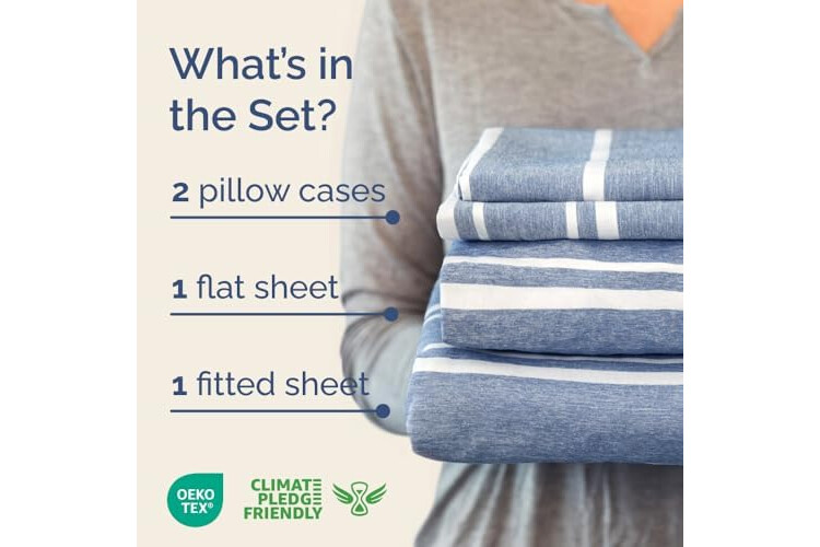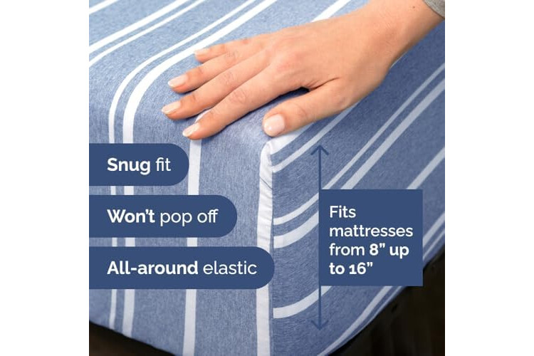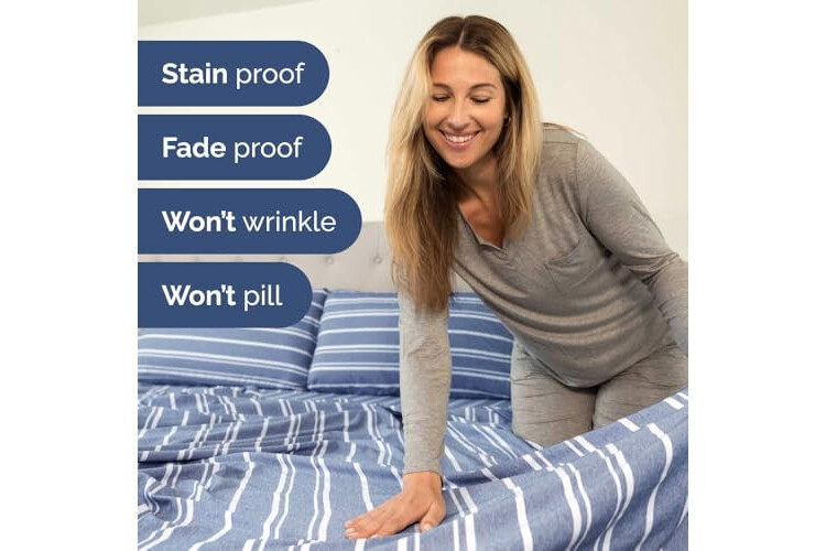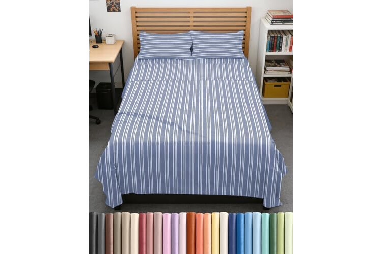 Full XL Bed Sheet Set - 4 Piece Extra Long Extended Full XL Sheets - Soft, Breathable & Cooling - Fits 8" to 16" Mattress with Deep Pockets - 54" x 80" - Wrinkle and Fade Resistant - Blue Stripes 3