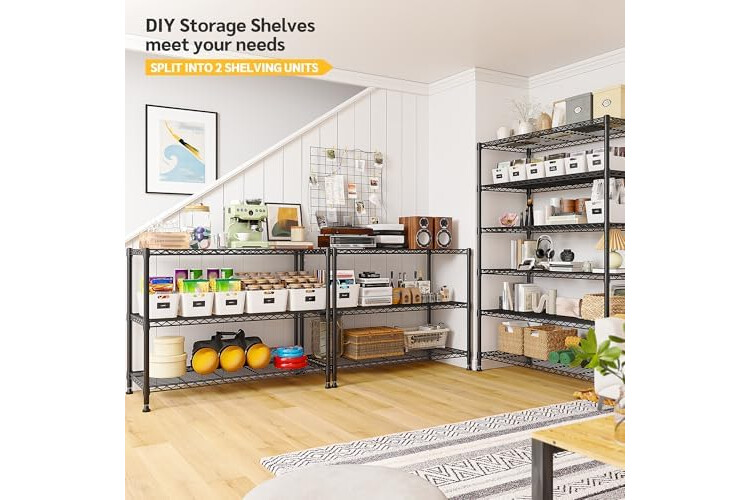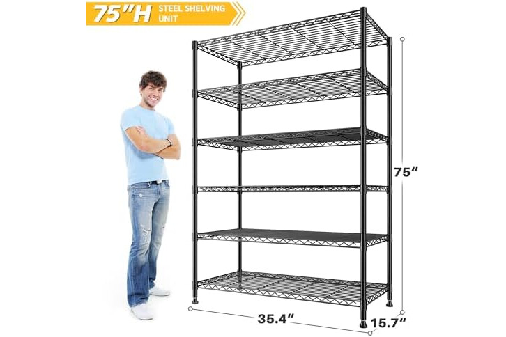 【75"H X35.4"W X 15.7"D Metal Shelving】The capacity of the 75''H storage shelves is twice that of the market shelves, easily meeting your storage needs.This extra wide metal rack can be used as home, warehouse, supermarket and many other scenarios, large wire shelf provide more storage space. It can also be assembled into 2 small metal shelf and you can build customized storage any way you want it.