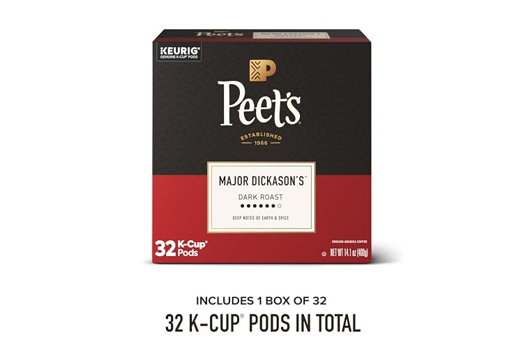 Peet's Coffee, Dark Roast Keurig K-Cup Pods, 100% Arabica Coffee - Major Dickason's Blend 32 Count (1 Box of 32 K-Cup Pods)