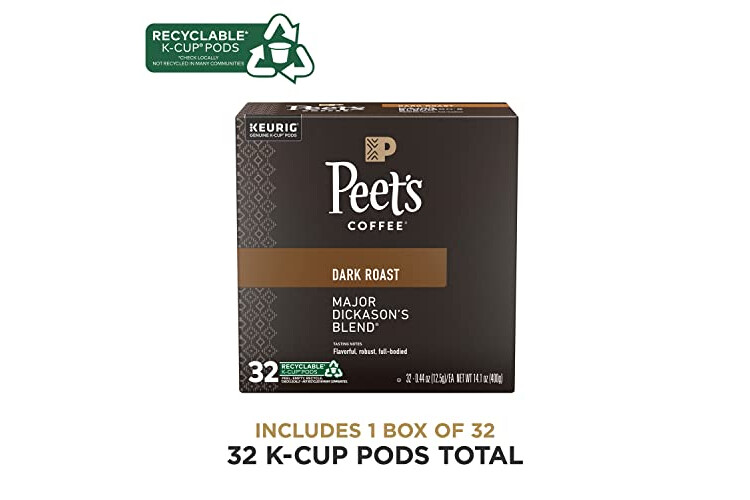 Peet's Coffee, Dark Roast Keurig K-Cup Pods - Major Dickason's Blend 32 Count (1 Box of 32 K-Cup Pods)