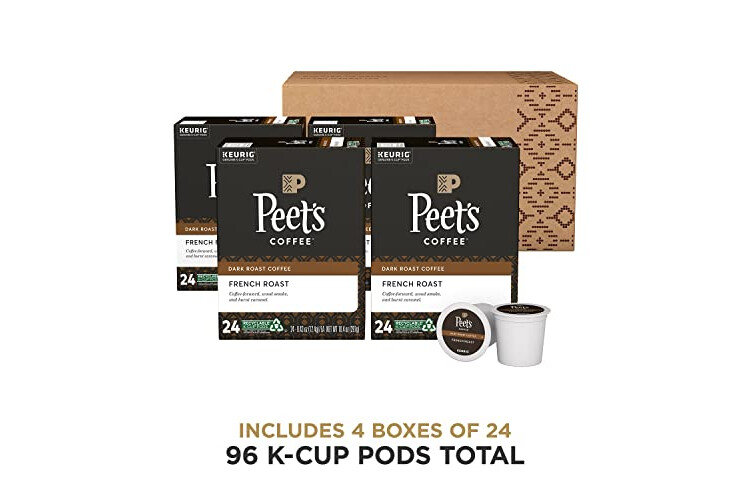 Contains four (4) Boxes of 24 Peet's French Roast Dark Roast Coffee Keurig K-Cup Pods (96 K-Cup Pods Total) - 100% Arabica Coffee