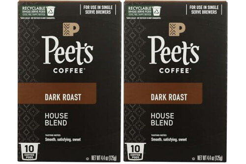 Peet's Coffee House K Cup Coffee Pods for Keurig Brewers, Dark Roast, 10 Pods, 4.4 oz (Pack of 2)