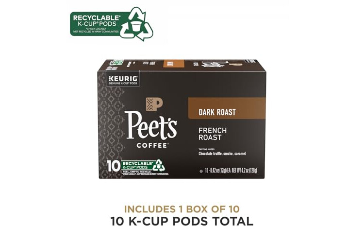 Peet's Coffee, Dark Roast Keurig K-Cup Pods - French Roast 10 Count (1 Box of 10 Pods)