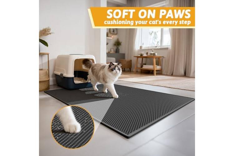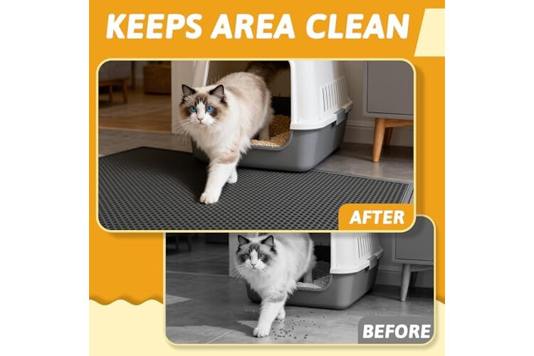 Easy Clean Washable Litter Mat: Pieviev litter box mat is made of soft and washable EVA. Dirt can be removed easily.You don't have to sweep up or vacuum the litter everyday.Save time and strength!! Plastic cat mats have to use vacuum to clean cat litter a...