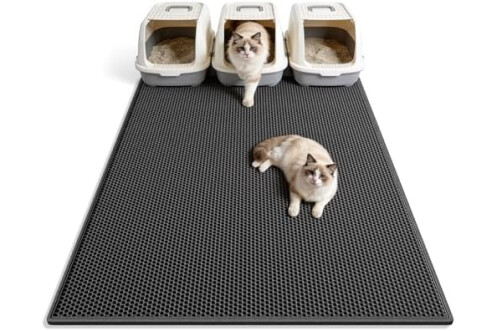 Pieviev Cat Litter Mat Double Layer Waterproof Urine Proof Trapping Mat 1 Pack (Black, 47x36 Inch (Pack of 1))