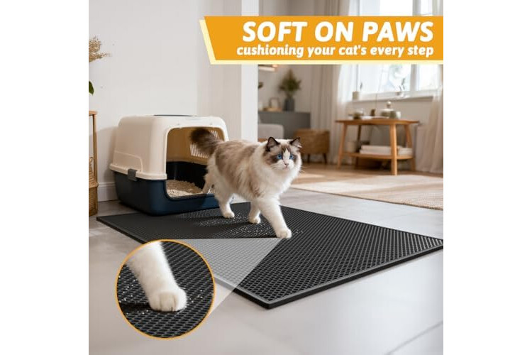 Easy Clean Washable Litter Mat: Pieviev litter box mat is made of soft and washable EVA. Dirt can be removed easily.You don't have to sweep up or vacuum the litter everyday.Save time and strength!! Plastic cat mats have to use vacuum to clean cat litter a...