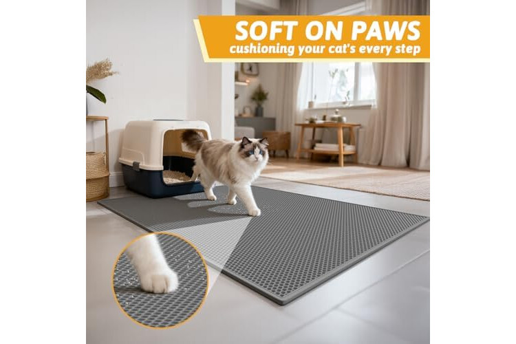 Pieviev Cat Litter Mat Double Layer Waterproof Urine Proof Trapping Mat 1 Pack (Gray, 47x36 Inch (Pack of 1))