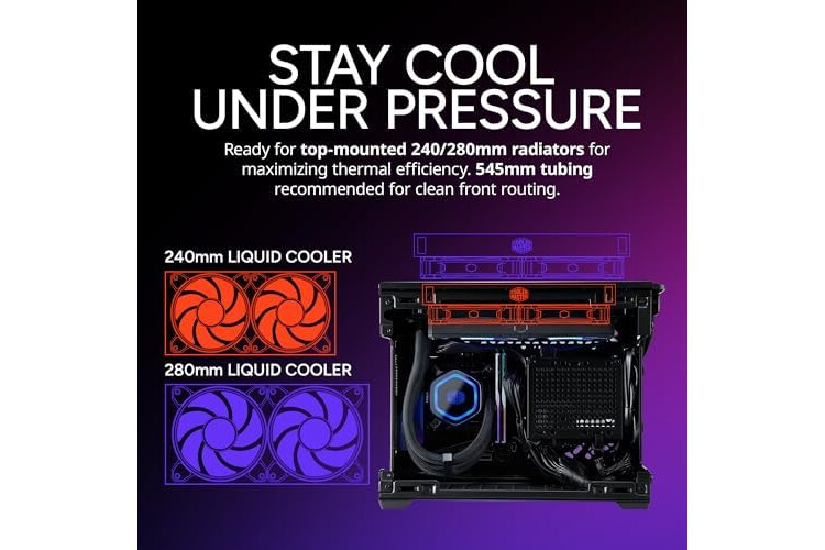 Stay Cool Under Pressure: Ready for top-mounted 240/280mm radiators for maximizing thermal efficiency. 400mm tubing recommended for clean front routing.