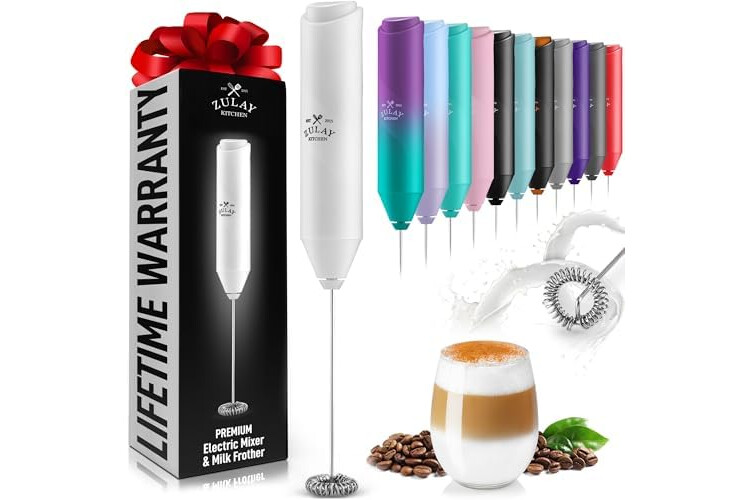 Zulay FrothMate Powerful Milk Frother for Coffee - Portable & Compact Handheld Foam Maker for Lattes, Cappuccinos, Matcha, Hot Chocolate - Milk Foamer Frother - No Stand Electric Whisk (White)