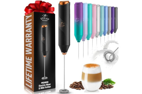 Zulay Kitchen Powerful Milk Frother Wand - Handheld Stainless Steel - Battery Operated Drink Mixer for Coffee, Lattes, Cappuccino, Matcha - Froth Mate Frother Gift - Black with Copper