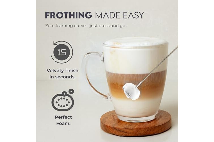 • Fast Frothing Power: Whip up creamy foam for lattes, cappuccinos, matcha, and more in seconds.