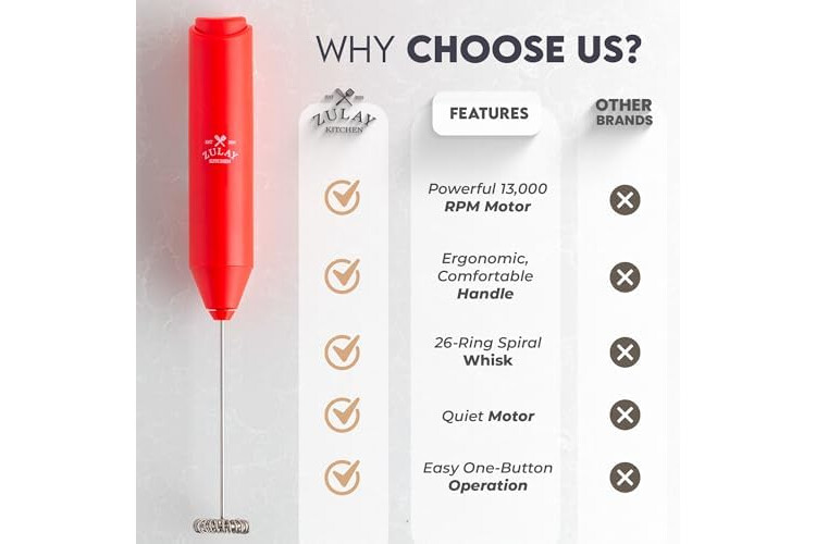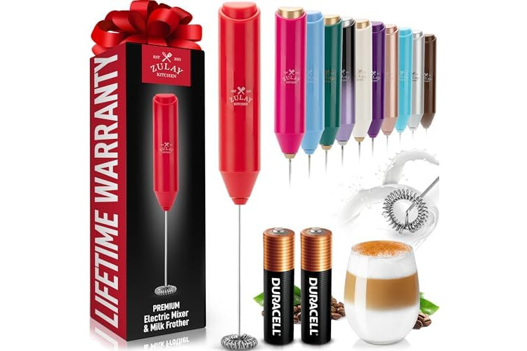 Zulay Kitchen Powerful Milk Frother Handheld with 2 Duracell AA Batteries – Ultra Fast Frother Wand Electric Drink Mixer for Coffee, Lattes, Cappuccinos, Matcha & Hot Chocolate – Portable Foam Maker