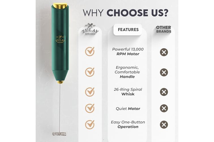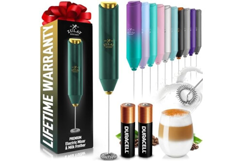 Zulay Kitchen Powerful Milk Frother Handheld with 2 Duracell AA Batteries – Ultra Fast Frother Wand Electric Drink Mixer for Coffee, Lattes, Cappuccinos, Matcha & Hot Chocolate – Portable Foam Maker