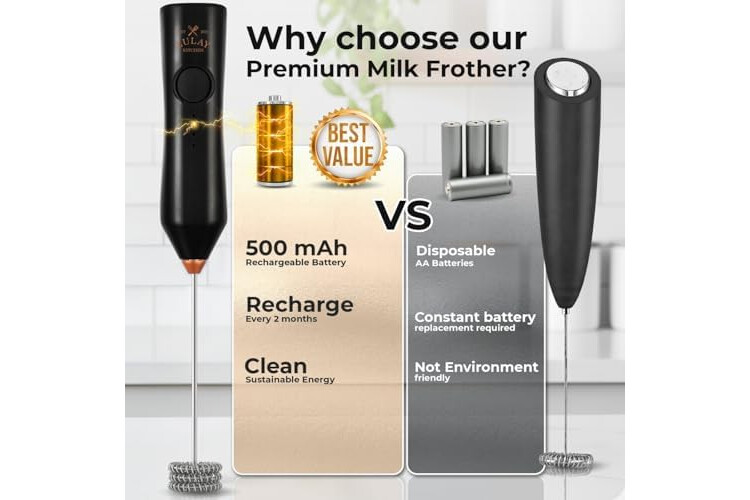 COMPACT, PORTABLE & BUILT TO LAST: Slim, lightweight design fits neatly into drawers, travel bags, or kitchen setups. Durable construction backed by the Zulay Kitchen Lifetime Warranty, ensuring this frother is your go-to tool for years.