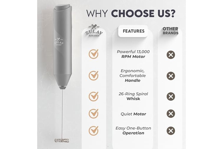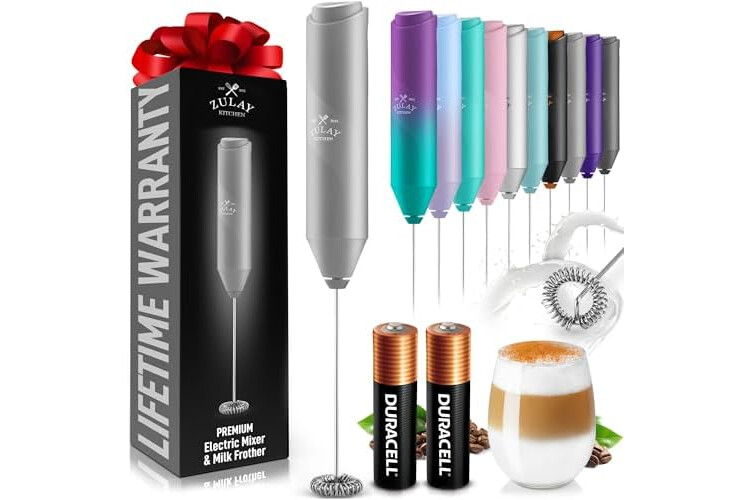 Zulay Kitchen Powerful Milk Frother Handheld with 2 Duracell AA Batteries – Ultra Fast Frother Wand Electric Drink Mixer for Coffee, Lattes, Cappuccinos, Matcha & Hot Chocolate – Portable Foam Maker